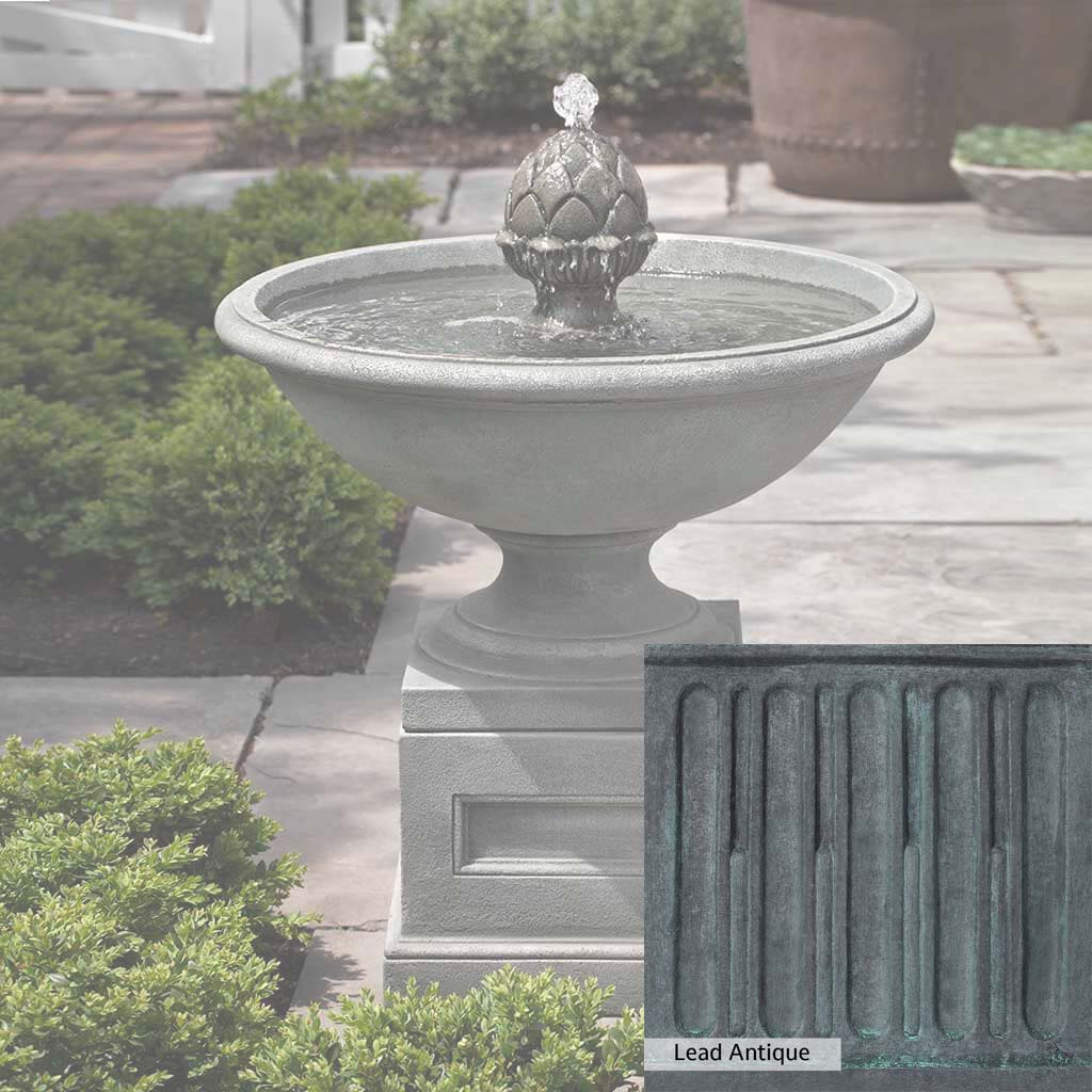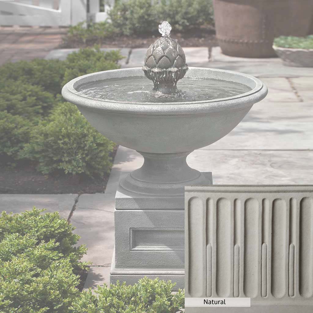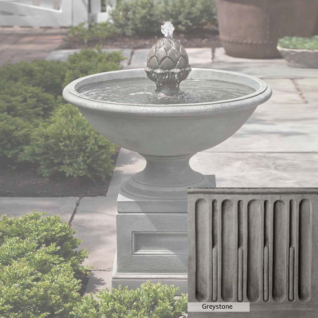 The Williamsburg Chiswell Fountain is handcrafted by skilled artisans in the USA. The Campania team applies a unique patina with experienced hands, making each piece special. This fountain is featured in the Alpine Stone color. Campania International's exclusive cast stone blend is expertly molded to create each piece in the construction of this fountain. Due to the materials used and manufacturing processes, as well as variations in photography conditions, natural differences may occur in size, weight, and color. The actual color may vary from the photo.