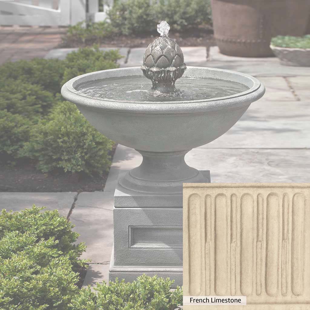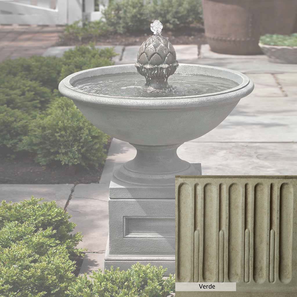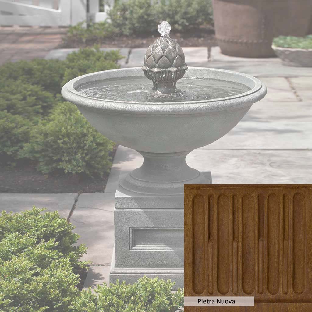 The Williamsburg Chiswell Fountain is handcrafted by skilled artisans in the USA. The Campania team applies a unique patina with experienced hands, making each piece special. This fountain is featured in the Alpine Stone color. Campania International's exclusive cast stone blend is expertly molded to create each piece in the construction of this fountain. Due to the materials used and manufacturing processes, as well as variations in photography conditions, natural differences may occur in size, weight, and color. The actual color may vary from the photo.